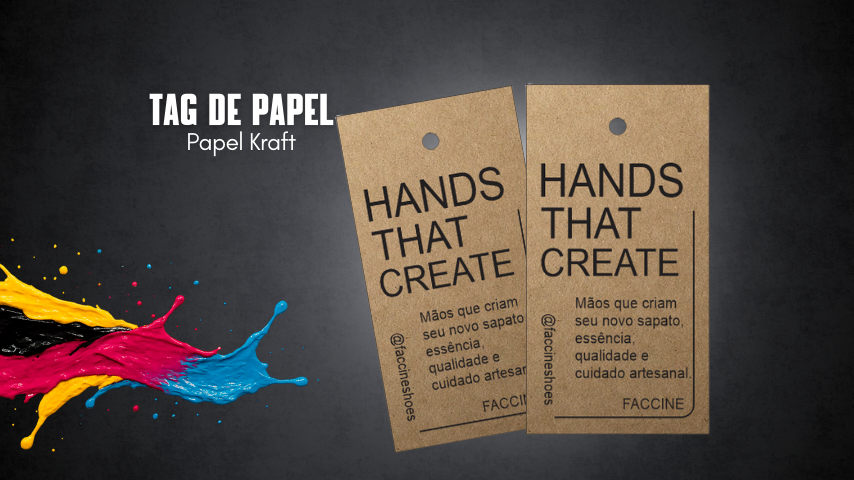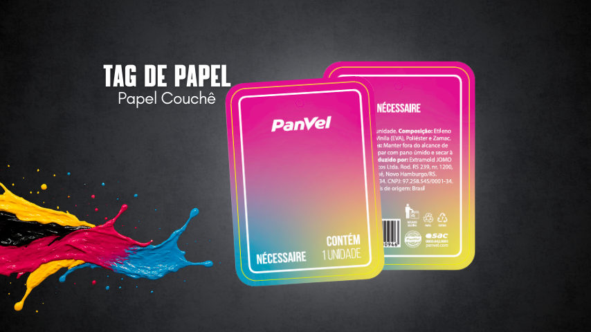 Tags em papel produzidas em cartões Triplex 350g, Kraft 420g, adesivo Couchê, adesivo metalizado, Triplex empastado, entre outros materiais de alta qualidade. Impressão em policromia, com aplicação de verniz UV para maior proteção e destaque visual.